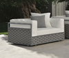 Современный дизайнерский набор мебели для террасы или балкона из ротанга включает диван, стулья и журнальный столик. Идеально подходит для создания уютной зоны отдыха на открытом воздухе.