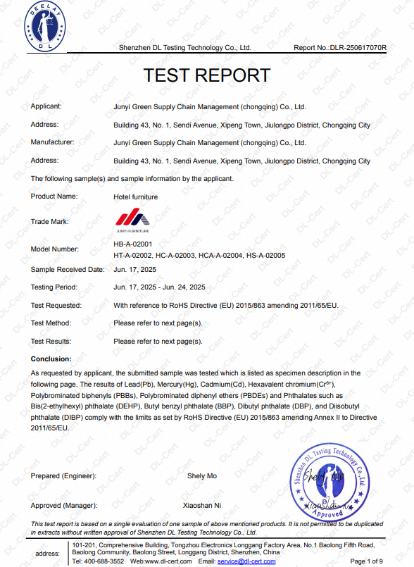Набор мебели для спальни и гостиничных номеров сочетает в себе современный дизайн и функциональность. Включает кровать, тумбы и другие элементы, выполненные из качественного дерева. Подходит для оснащения отелей, гостевых домов, квартир и других помещений. Мебель отличается портативностью и удобством сборки. Доступны два размера кровати: 1200×2000 мм и 1500×2000 мм. Современный стиль дизайна делает этот набор универсальным для различных интерьеров. Материалы соответствуют стандарту E1, что гарантирует безопасность использования. Произведено в Чунцине, Китай, с учетом международных требований к качеству. Набор сертифицирован по стандартам CQC и RoHS. Идеально подходит для коммерческого и частного применения. Легко впишется в интерьер спальни, гостиницы или офисного помещения.