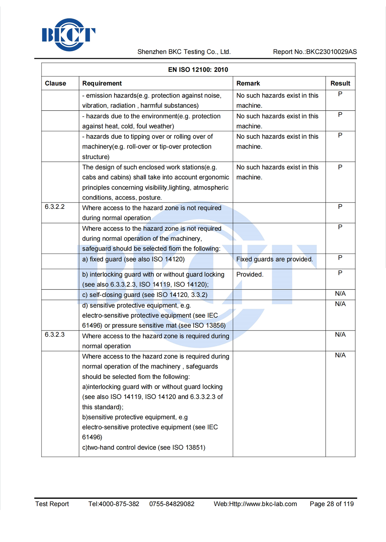 | Оборудование для производства Test Report | При условии |