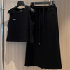 Женский комплект для отдыха из хлопка: стильный дизайнерский набор из двух предметов для повседневной носки. Летнее платье с O-образным вырезом и свободным кроем, представленное в черном цвете и размерах S, M, L.