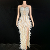 Элегантное женское платье с перьями для вечерних мероприятий, выполненное из сетчатой ткани с вышивкой и украшениями в виде кристаллов. Прямой силуэт и длина до щиколотки подчеркнут ваш стиль в любом сезоне.